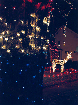 Rudolph & RWB lights, Wardman Rd, Kenmore, NY, December 15, 2001./Marion Faller.