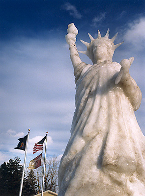 Statue of Liberty made of ice & snow, Claudette's Catering, Amherst, NY, January 8, 2002/ Marion Faller.