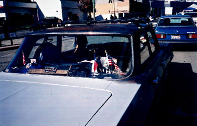Rear window of older car, West LA, CA.,February 2002/Sally Stein.