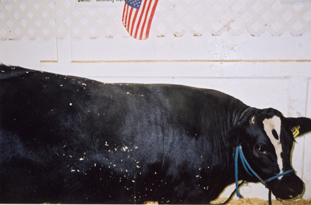 After the contest--this cow won no ribbons--on the night before being shipped to a local butcher, San Diego County Fair, Del Mar, CA, July 2002 / Sally Stein