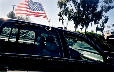 The next car over while driving west on the 10, La, CA., February, 2002/Sally Stein.